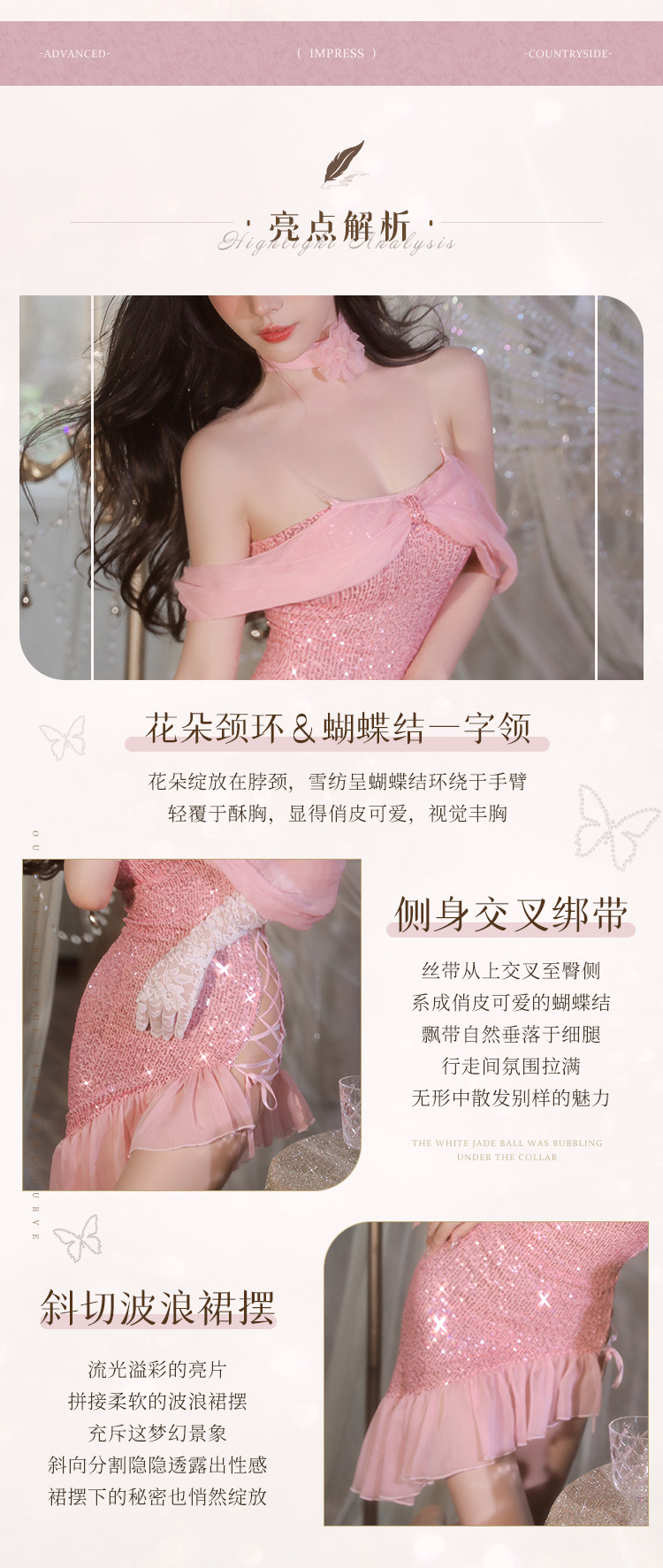 亮片珠链缀饰蜜桃公主裙