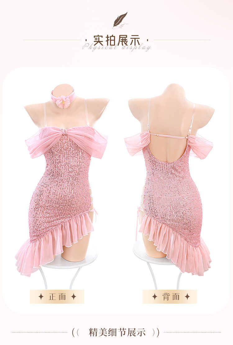 颜色: 粉【颈环+连衣裙+透明肩带*2+T裤】