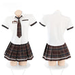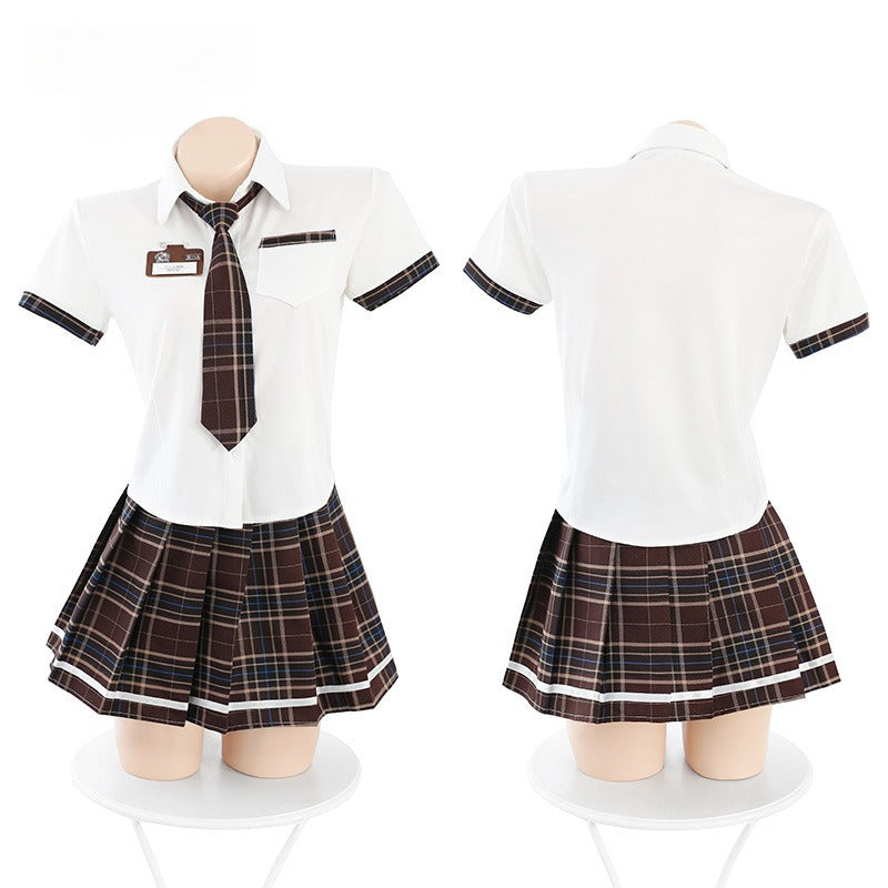不良校花 白+棕格【领带+上衣+校牌+百褶裙+T裤】