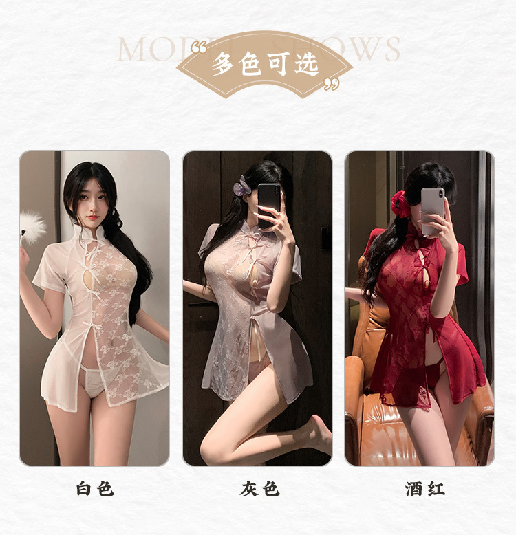 东方美人 蕾丝拼纱透身裸臀旗袍