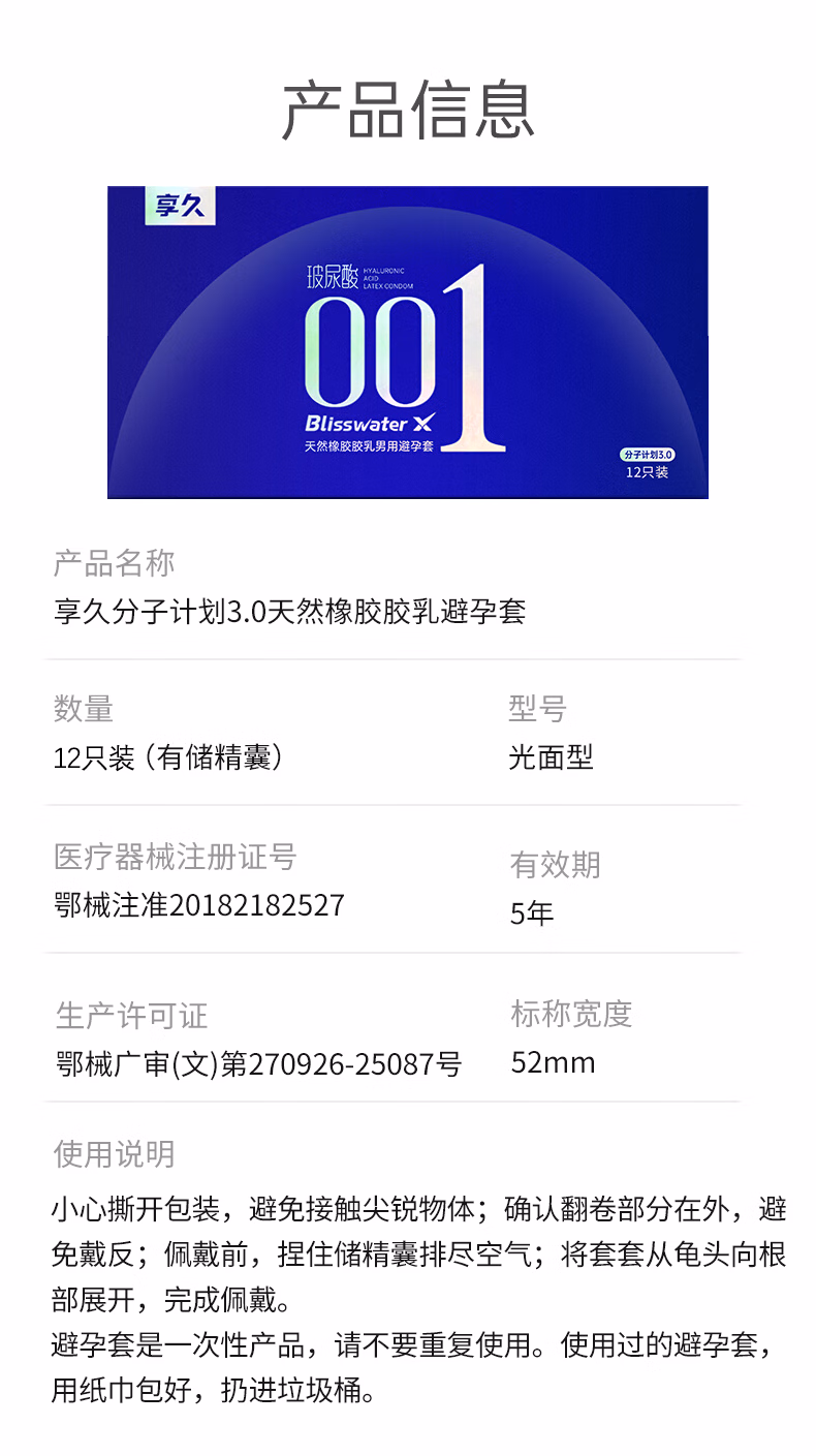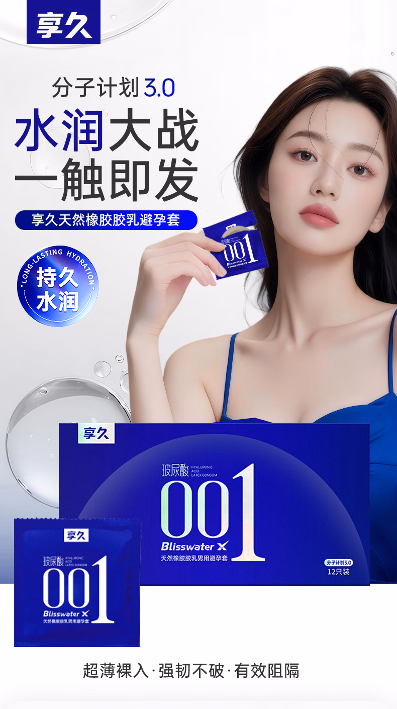 享久[分子计划3.0]玻尿酸持久水润安全套 - 12只装