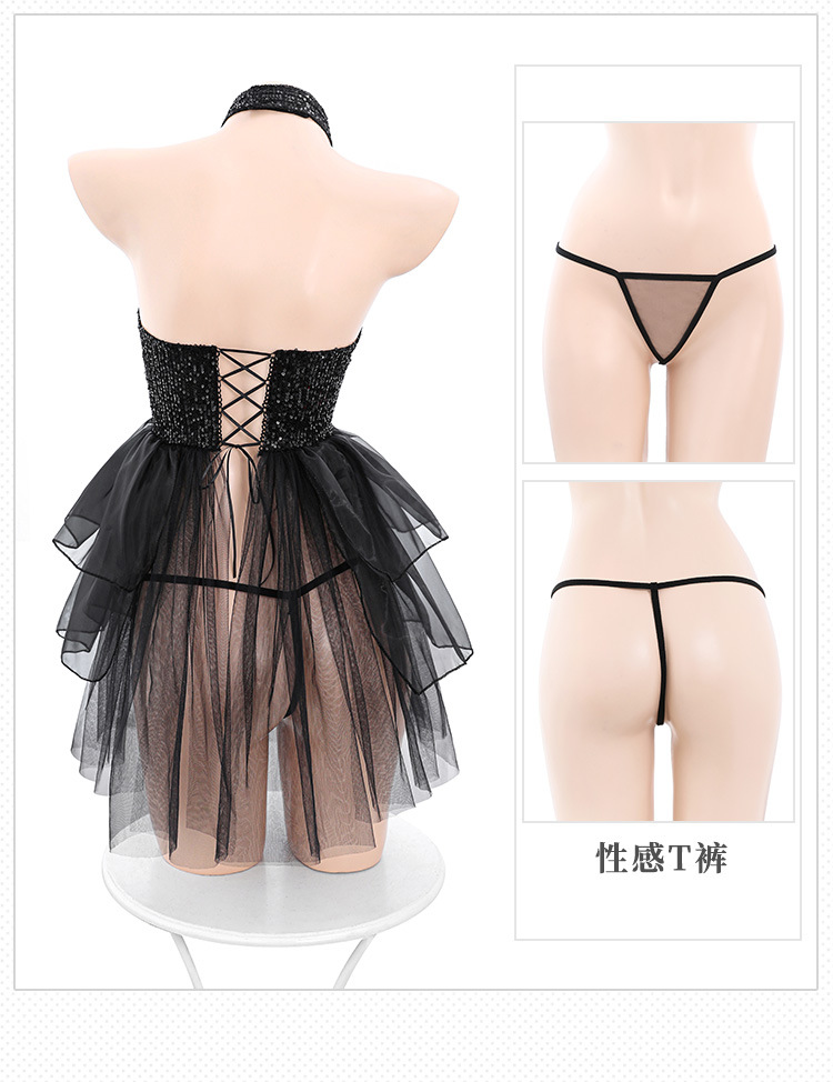 ◆鎏金晚宴◆黑【挂脖连衣裙+T裤】,本套装不包含模特丝袜及手拍,请在本店另购