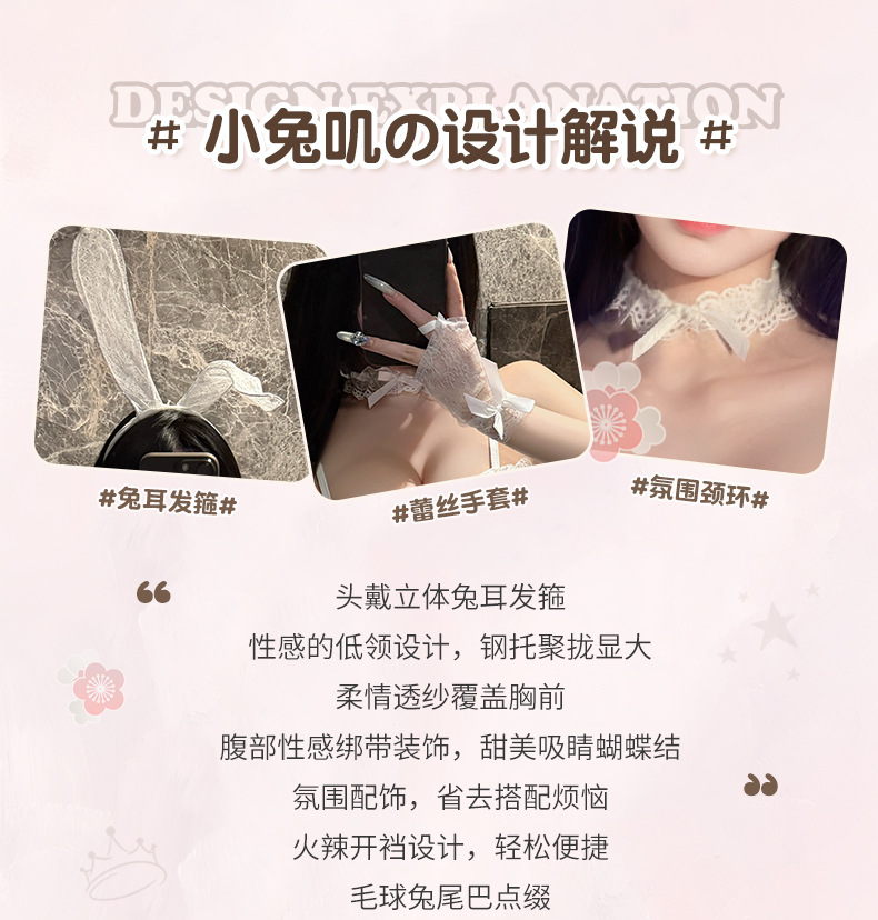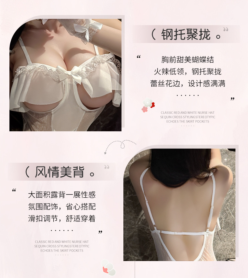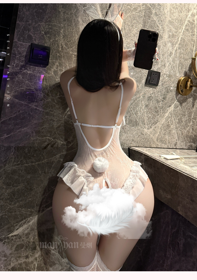 初恋朗姆 荷叶边镂空透视吊带开裆连体兔女郎制服