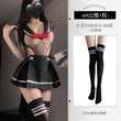 ◆双面JK◆黑+红【开裆连体衣+短裙】+黑长筒袜