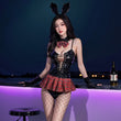 叛逆兔叽 黑+红格【发箍+翻领+领结+上衣+袖套*2+毛球兔尾+内裤】+黑连裤网袜