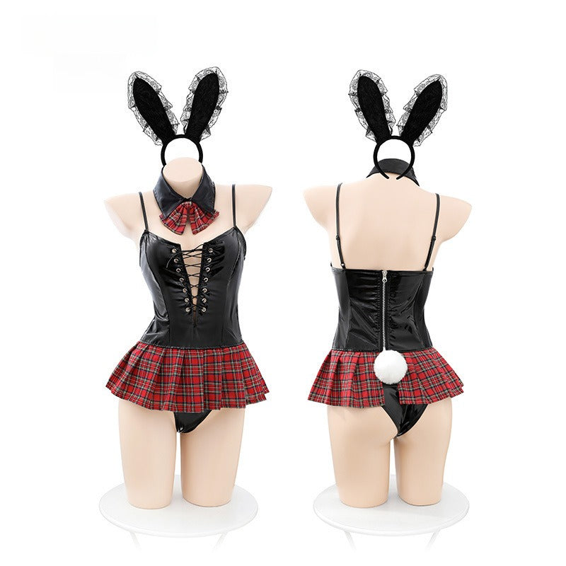 叛逆兔叽 纯欲诱惑欲兔漆皮格纹套装