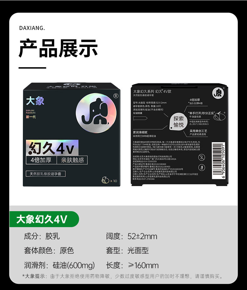 大象幻久系列4V款持久局部4倍加厚避孕套 - 3只/10装