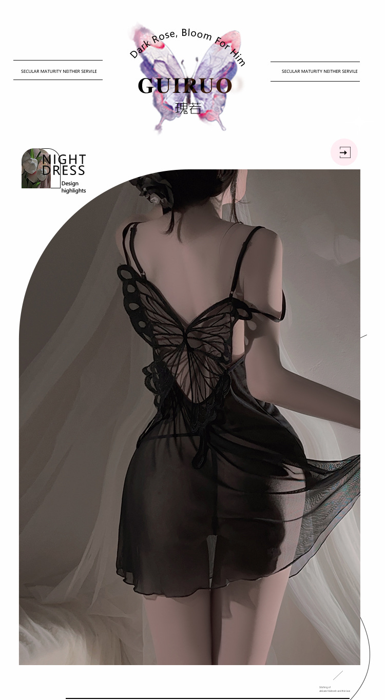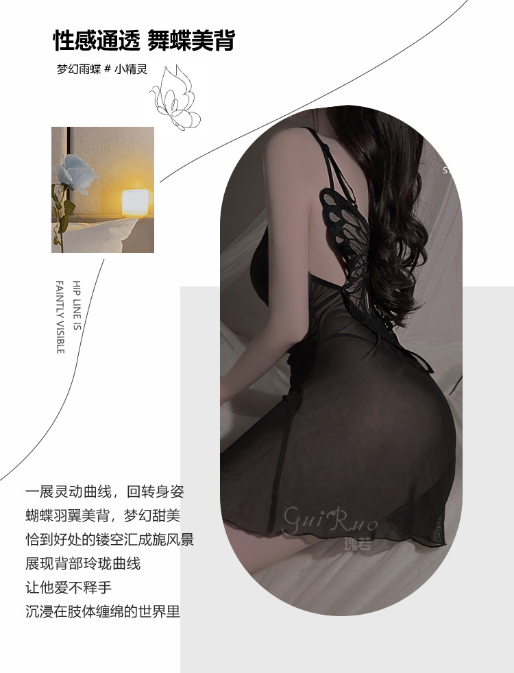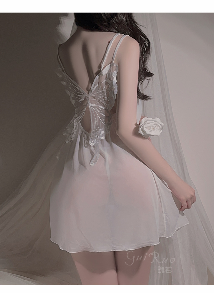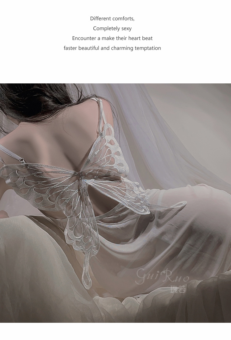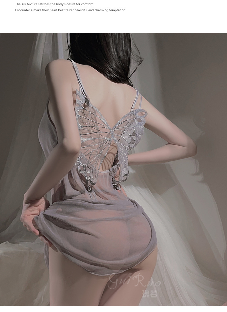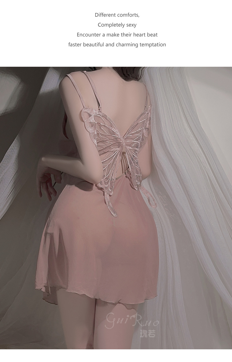 幻蝶 轻柔舒适网纱透视蝴蝶露背诱惑纯欲家居睡裙套装