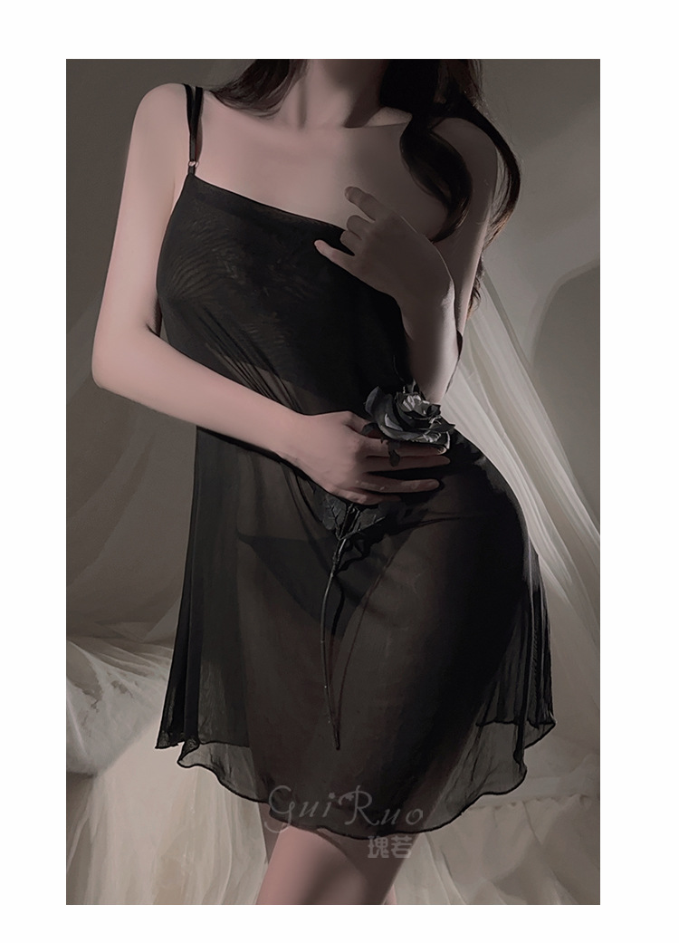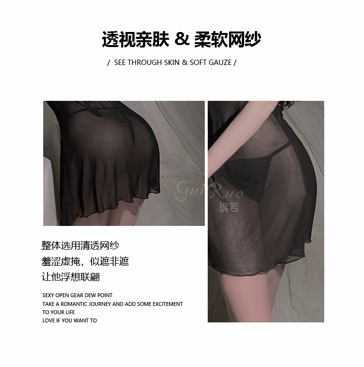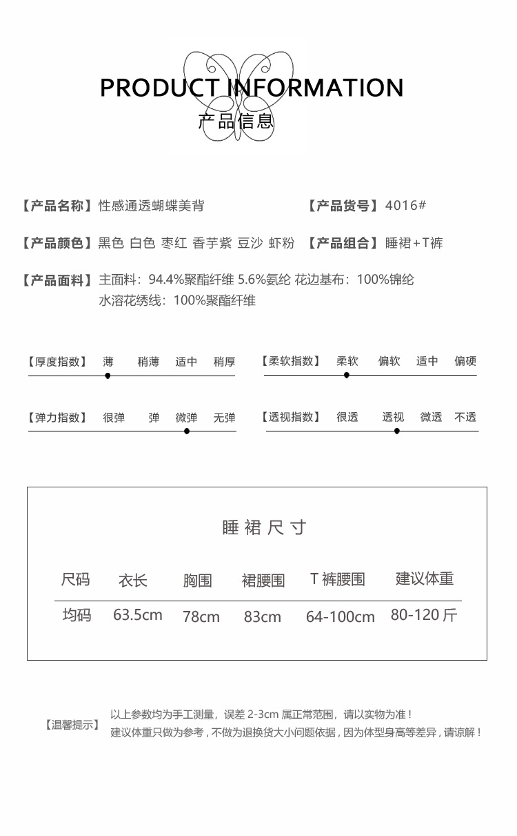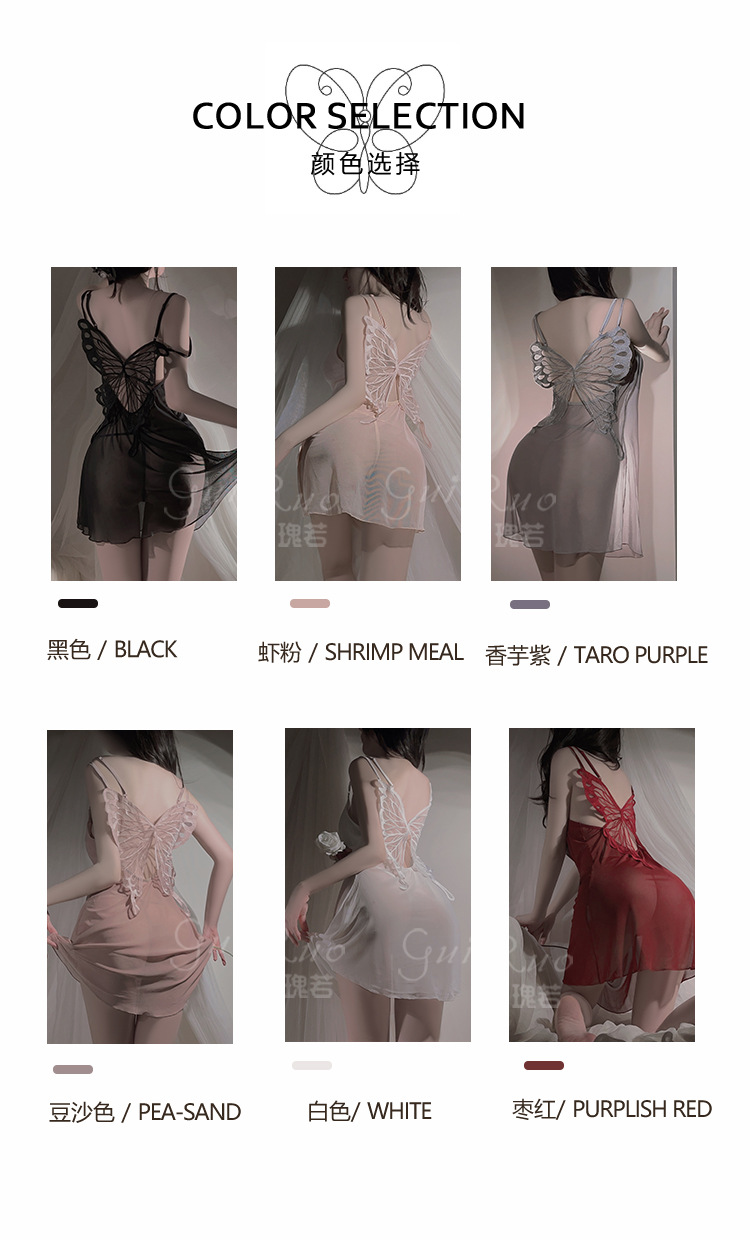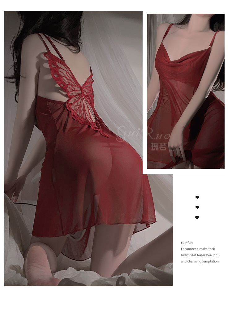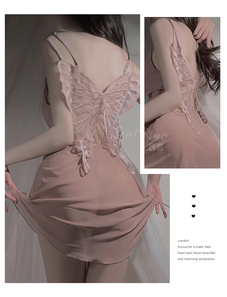 幻蝶 轻柔舒适网纱透视蝴蝶露背诱惑纯欲家居睡裙套装