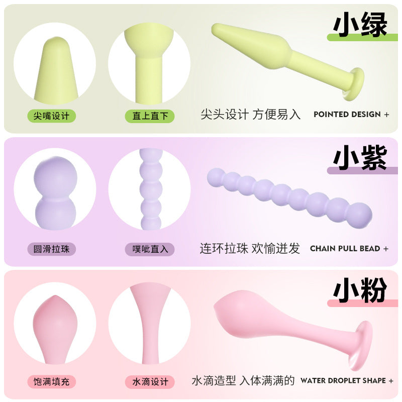 彩虹塞塞乐 三色套餐阴肛两用连环拉珠硅胶肛塞