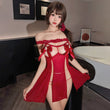 心动调频 性感蕾丝蝴蝶结露胸开档露臀睡裙