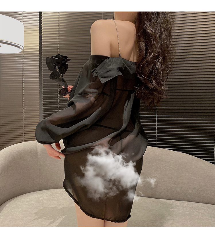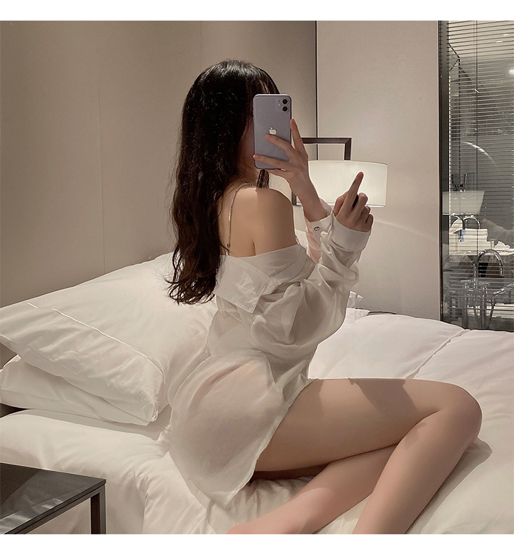 惹火衬衫性感透视露肩男友风衬衫女纯欲V领吊带睡衣裙