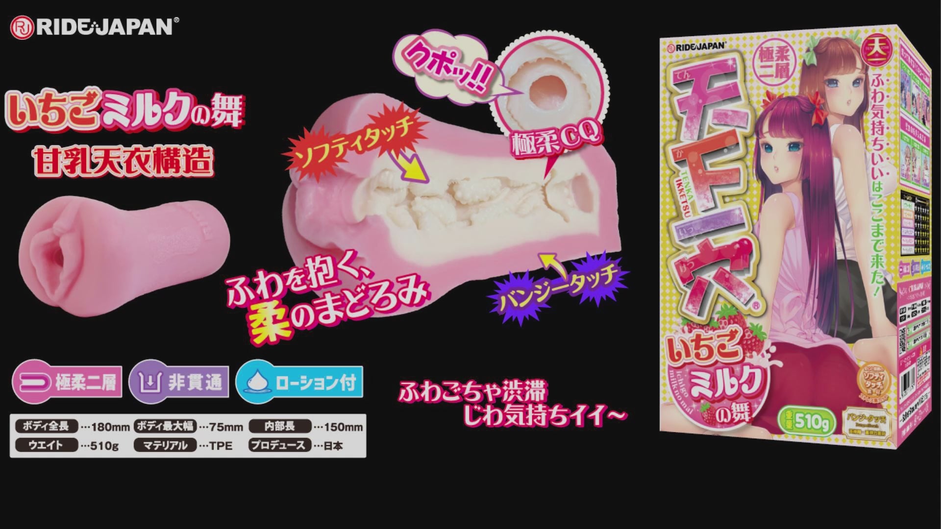日本RIDE JAPAN 天下一穴 草莓牛奶の舞 极柔双层飞机杯