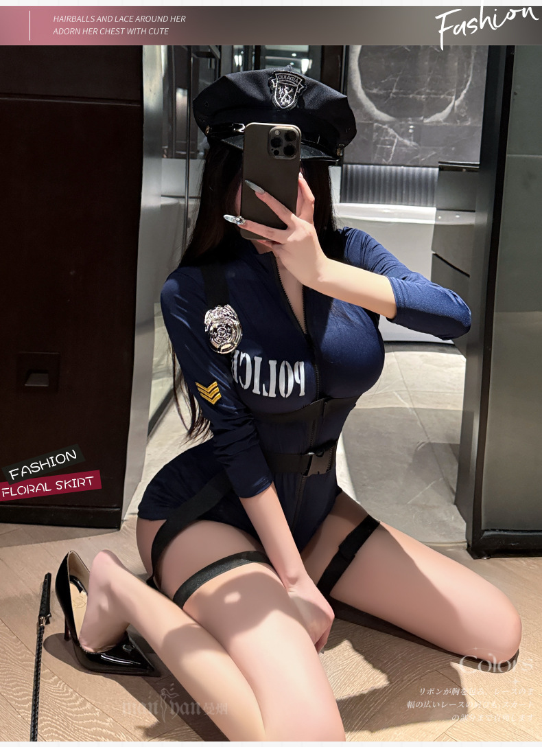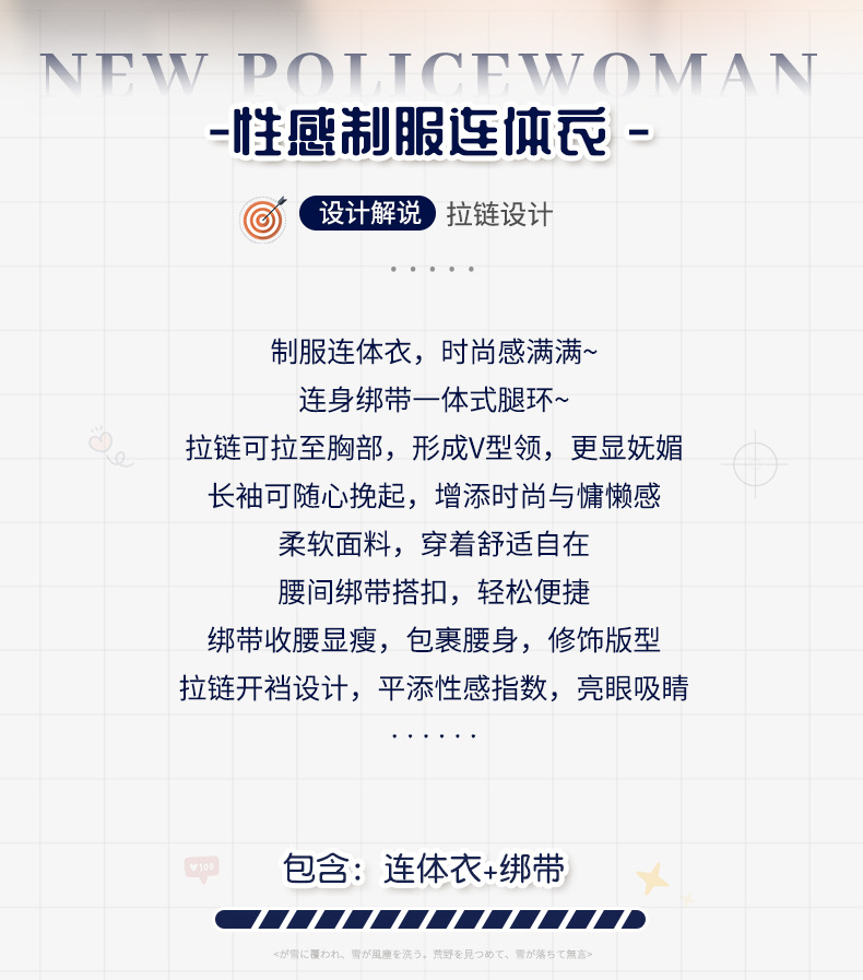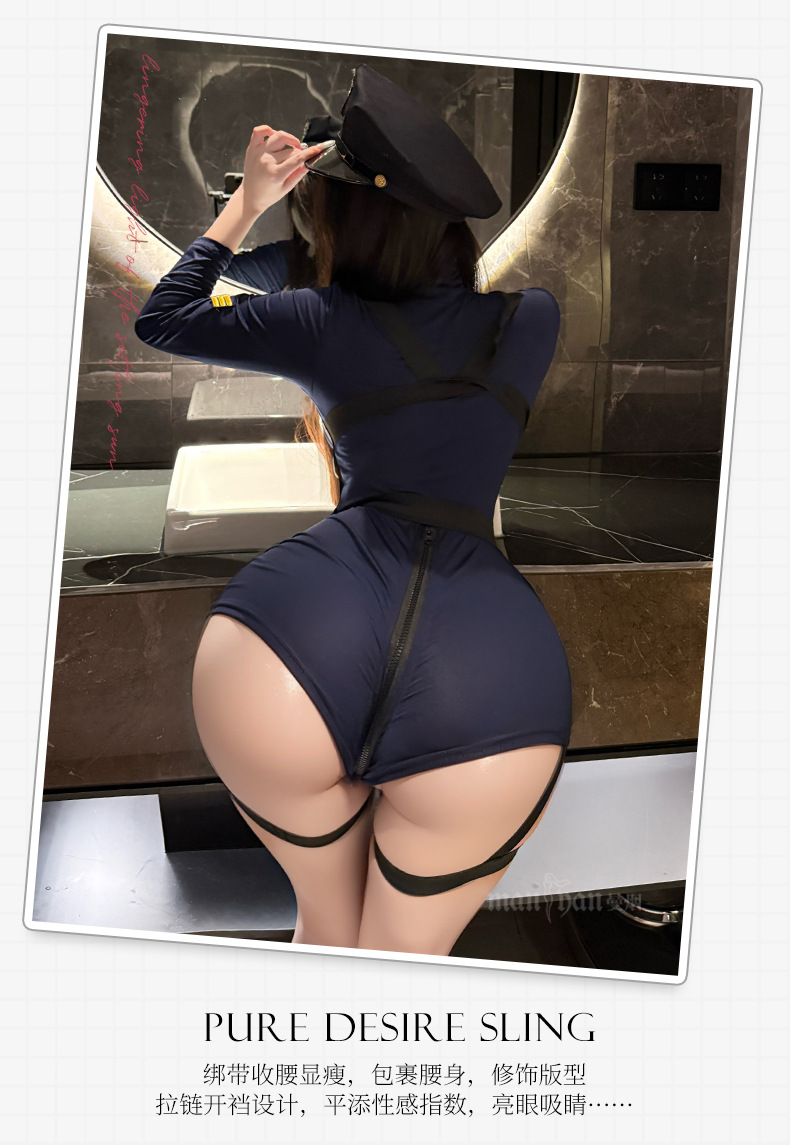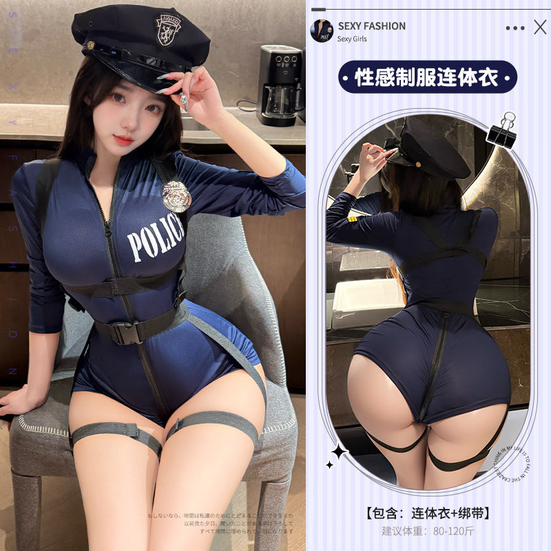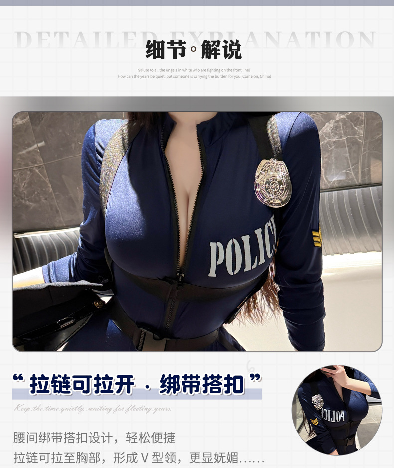 暗夜行动 性感紧身警官制服绑带拉链开档连体衣