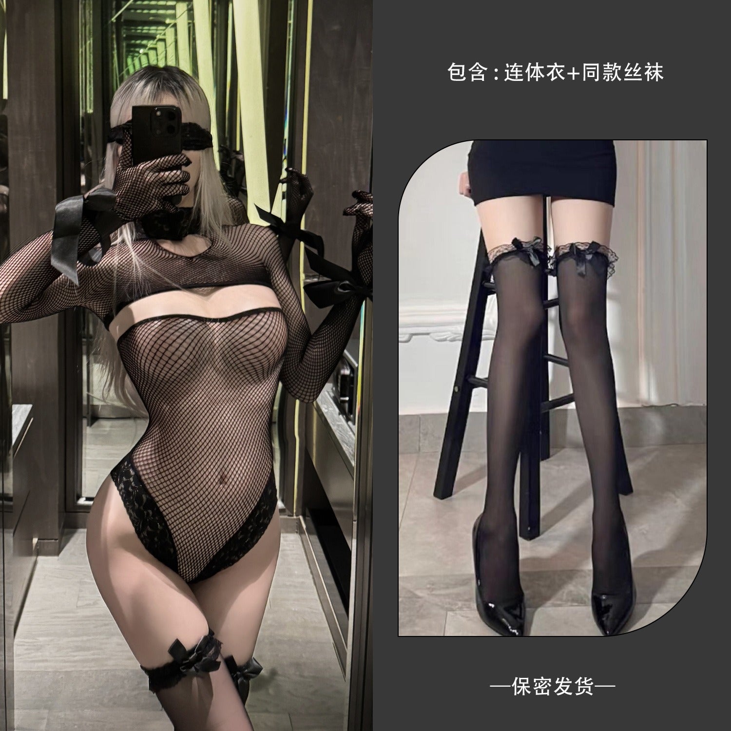 暗流涌动 渔网连体衣火辣免脱诱惑缕空立领网衣