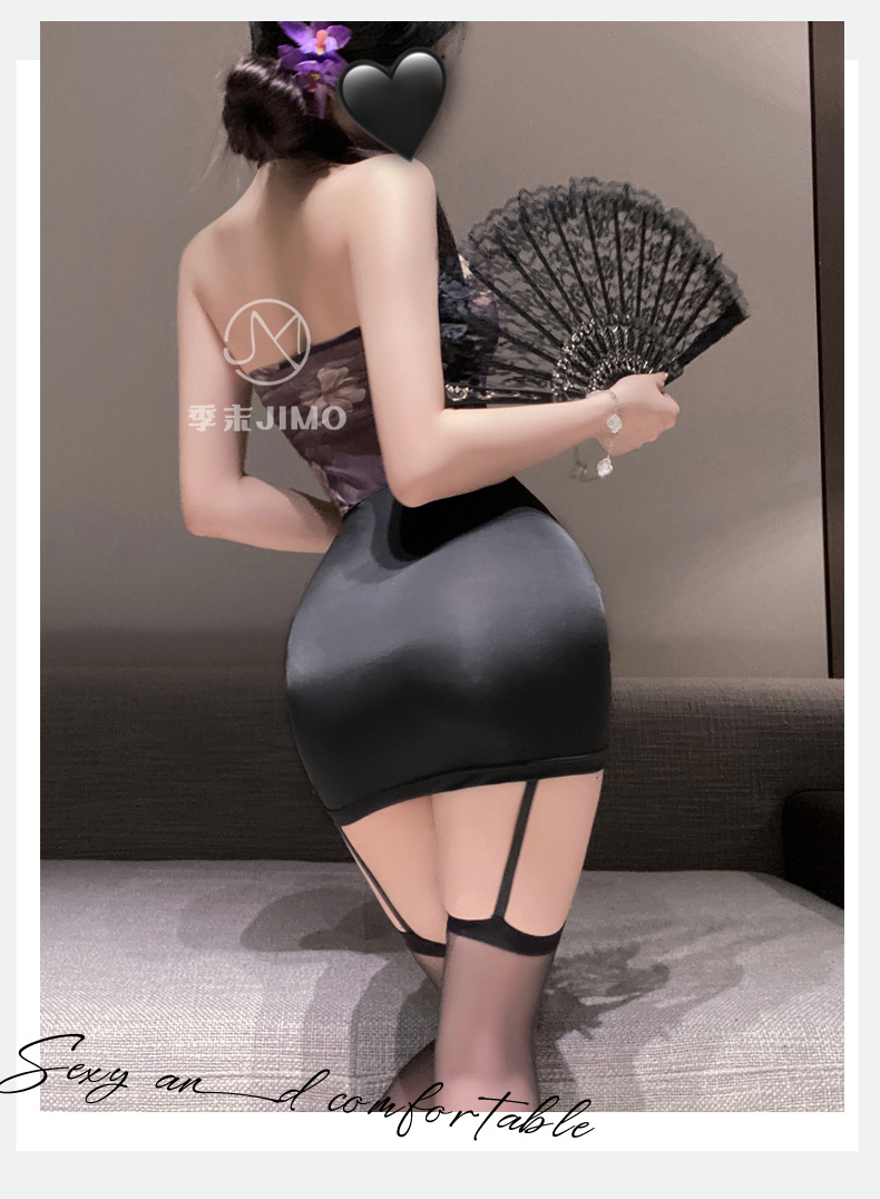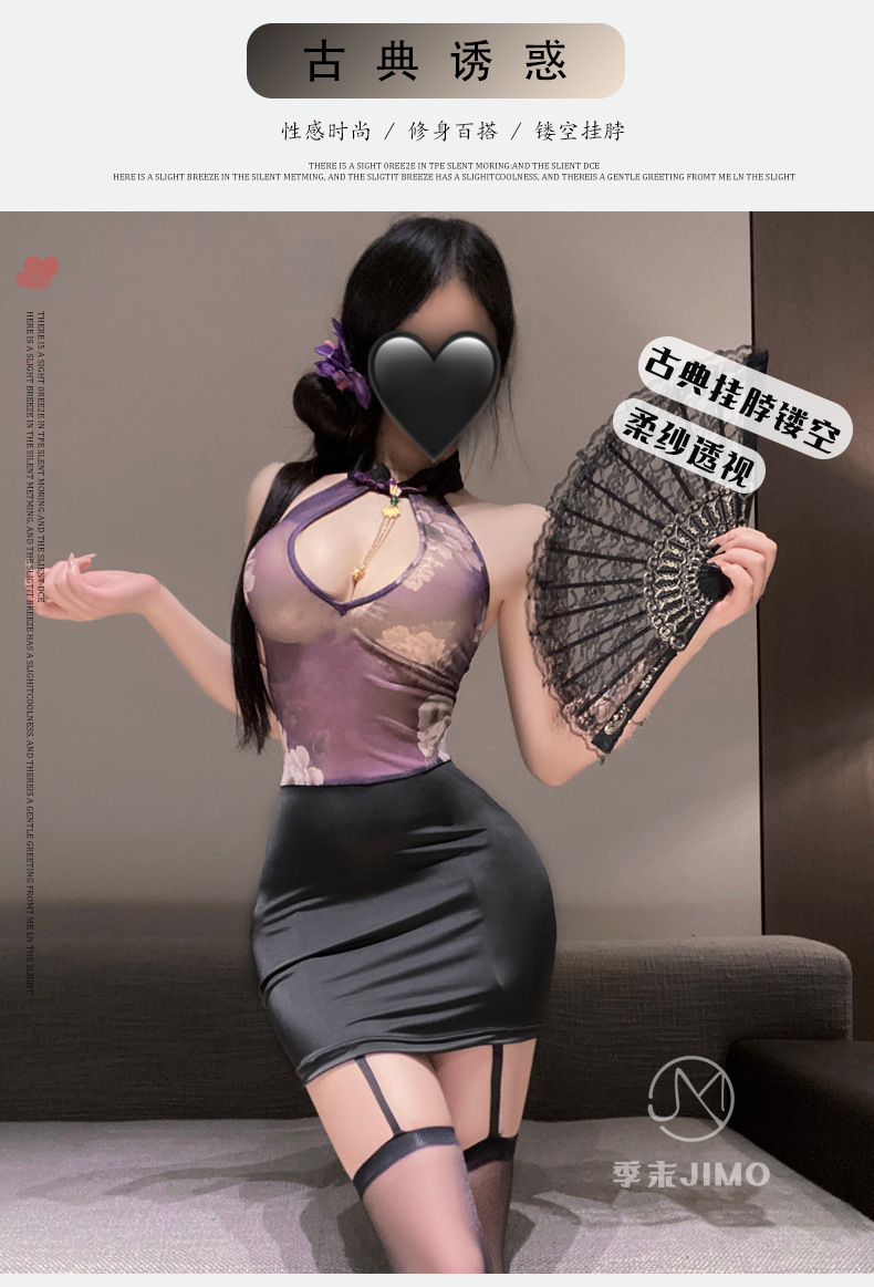 朦胧黛雨 新中式缕空挂脖旗袍秘书辣妹国风包臀裙