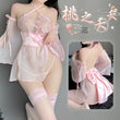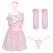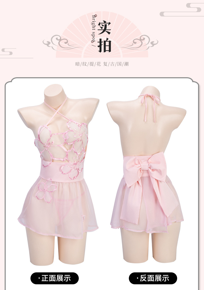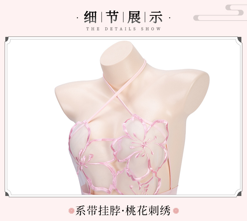 桃之夭夭刺绣柔纱透视睡裙套装