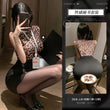 深夜诱惑 豹纹【上衣+短裙+T裤+工牌】
