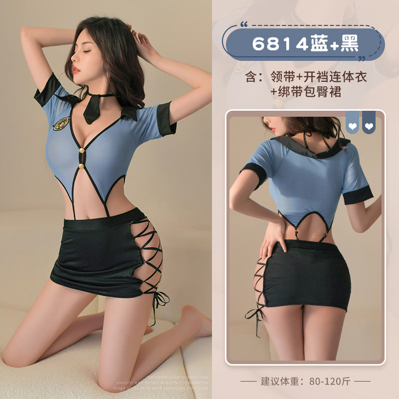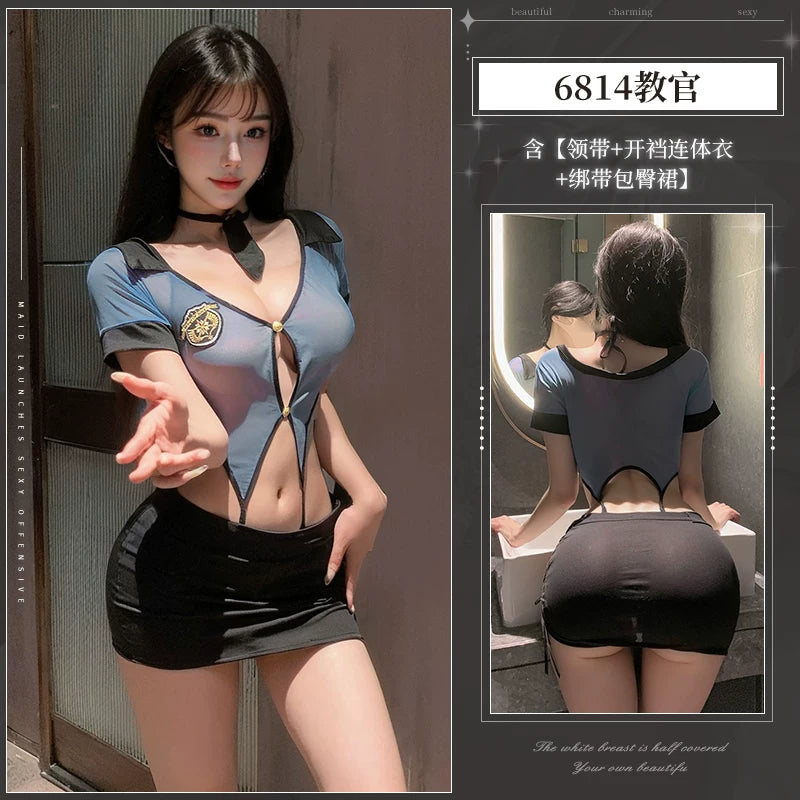 火辣教官 【领带+开裆连体衣+绑带包臀裙】