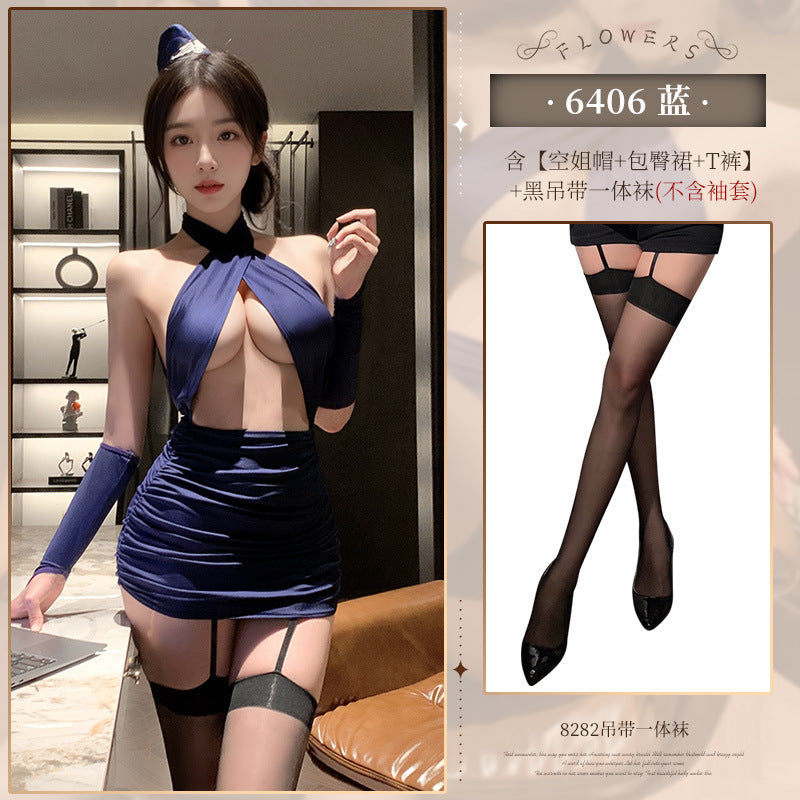 燃情空姐 交叉裹胸包臀燃情空姐套装制服诱惑
