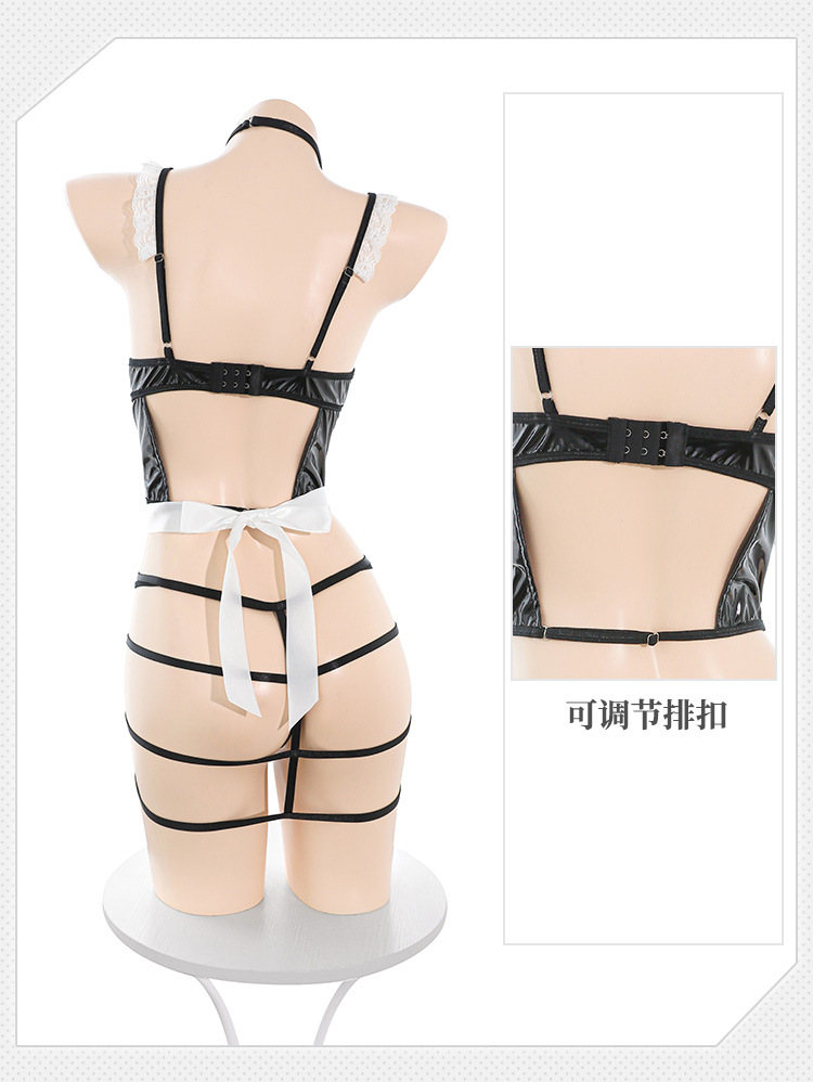 特殊服务 镂空织带裸臀漆皮女仆套装
