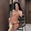 甜宠奶兔 丝绒抹胸绑带诱惑蝴蝶结吊袜兔女郎制服套装