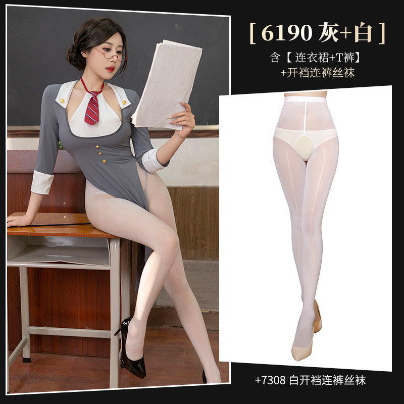 ◆私教密语◆灰+白【连衣裙+T裤】+白开裆连裤丝袜