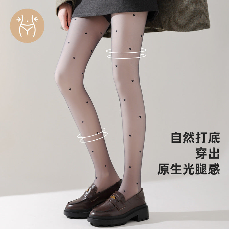 秋冬薄款新款波点爱心双层透肤裤袜可脱卸黑丝光腿神器