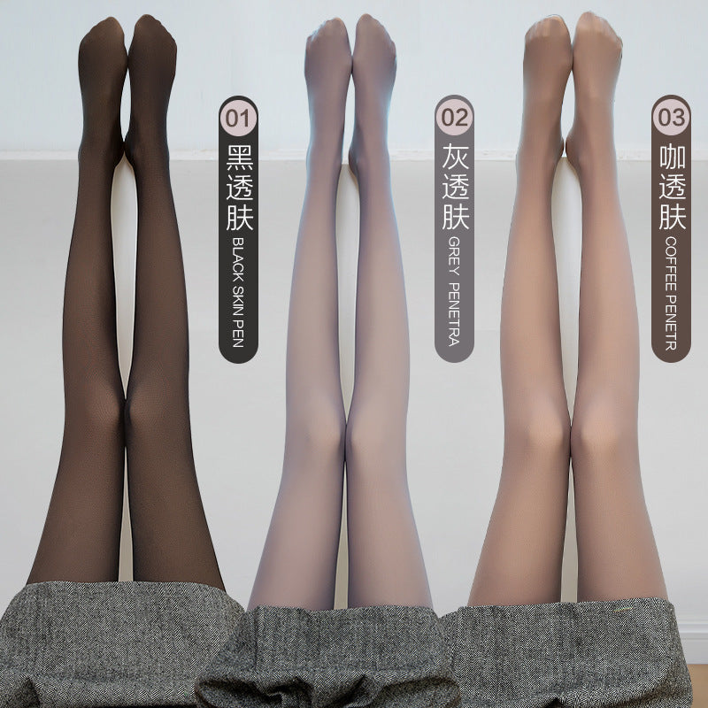 空姐灰连裤袜黑色春秋一体假透肉性感肤色光腿神器