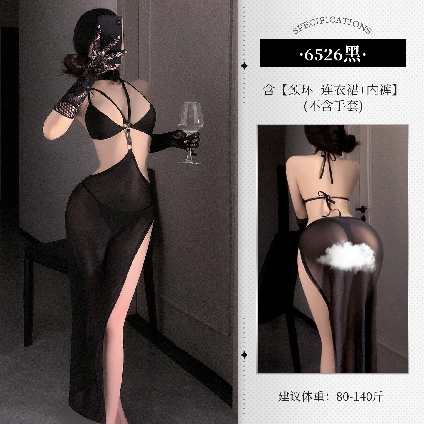 ◆红颜知己◆黑【颈环+连衣裙+内裤】