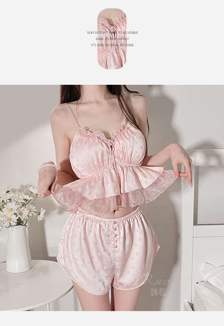 纯纯欲动低胸缎面两件式家居睡裙套装.
