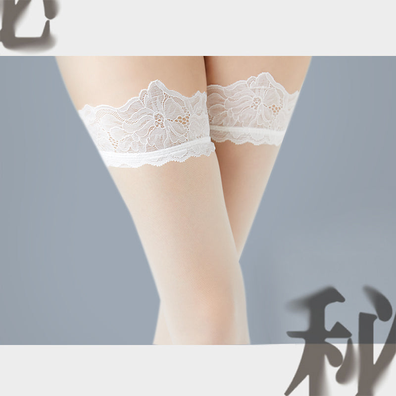 法式洛可可风格蕾丝袜边设计,超薄 5D厚度高密度针织工艺,袜口加入医用级防滑硅胶,脚尖透明化设计。