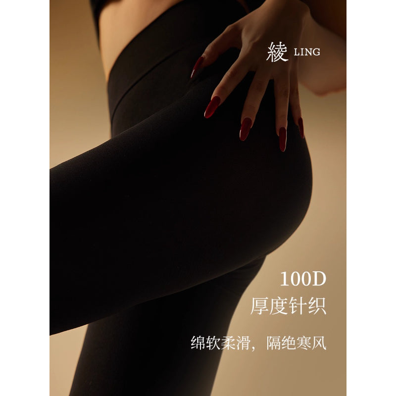 「绫」-「轻绒™」 100D显瘦无缝厚款黑丝打底连裤袜女秋冬款