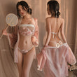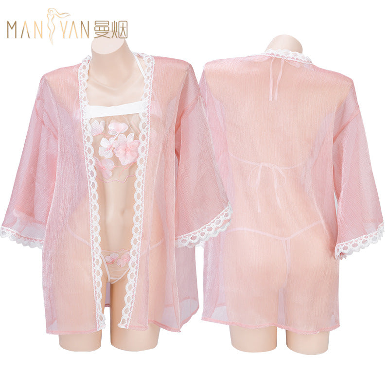 颜色:粉色,包含外罩衫+肚兜+T裤,本套装不包含模特配扇