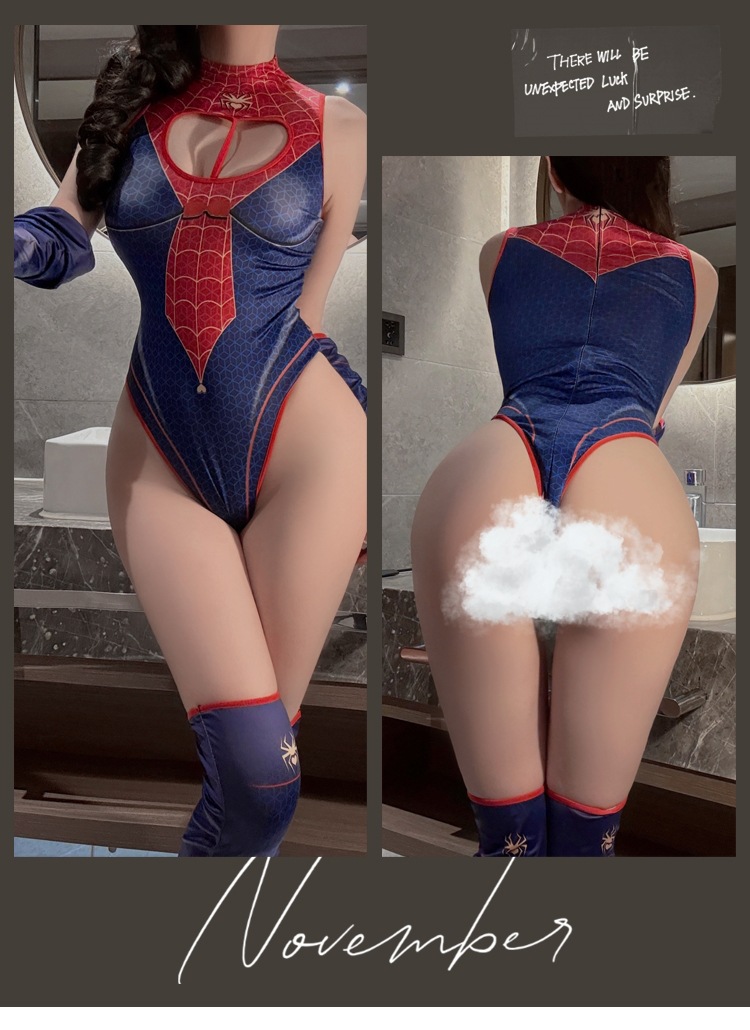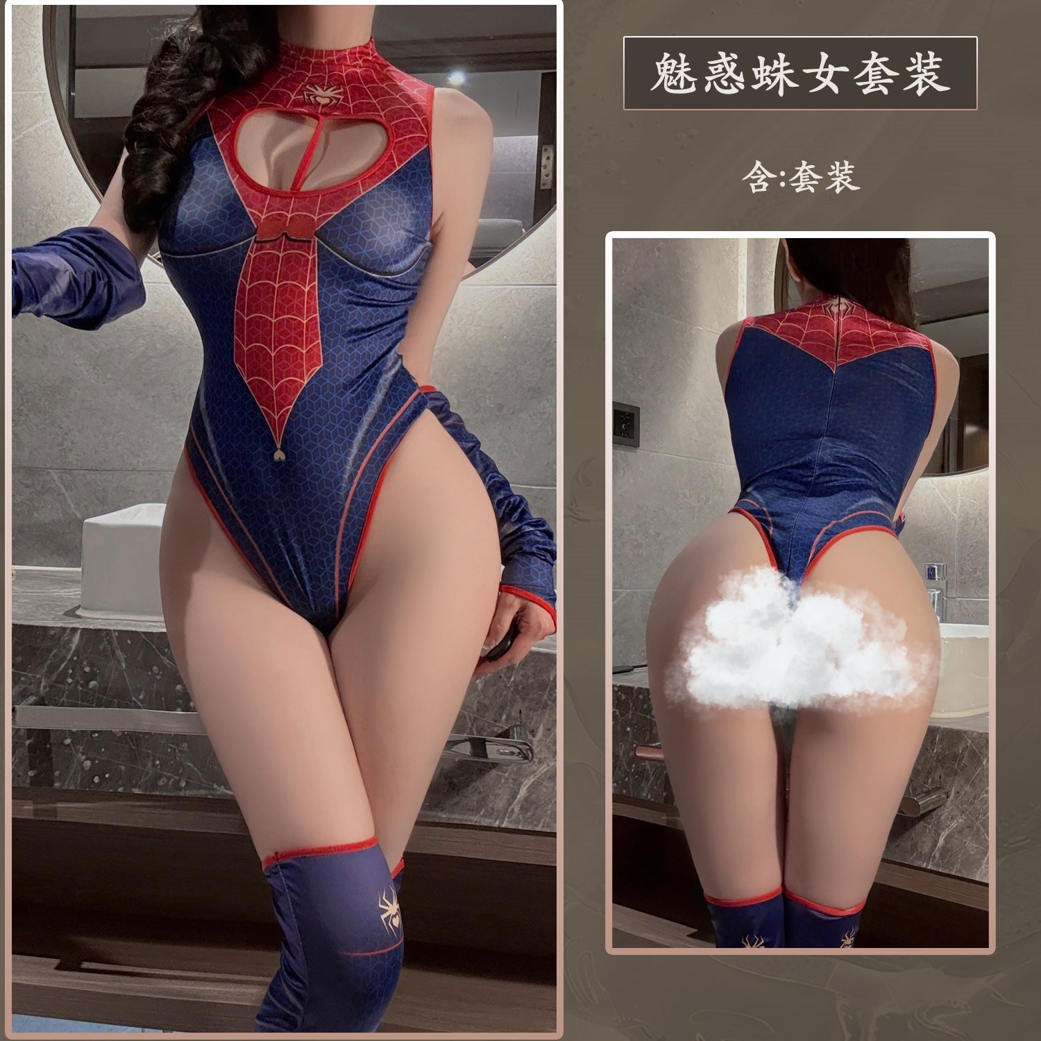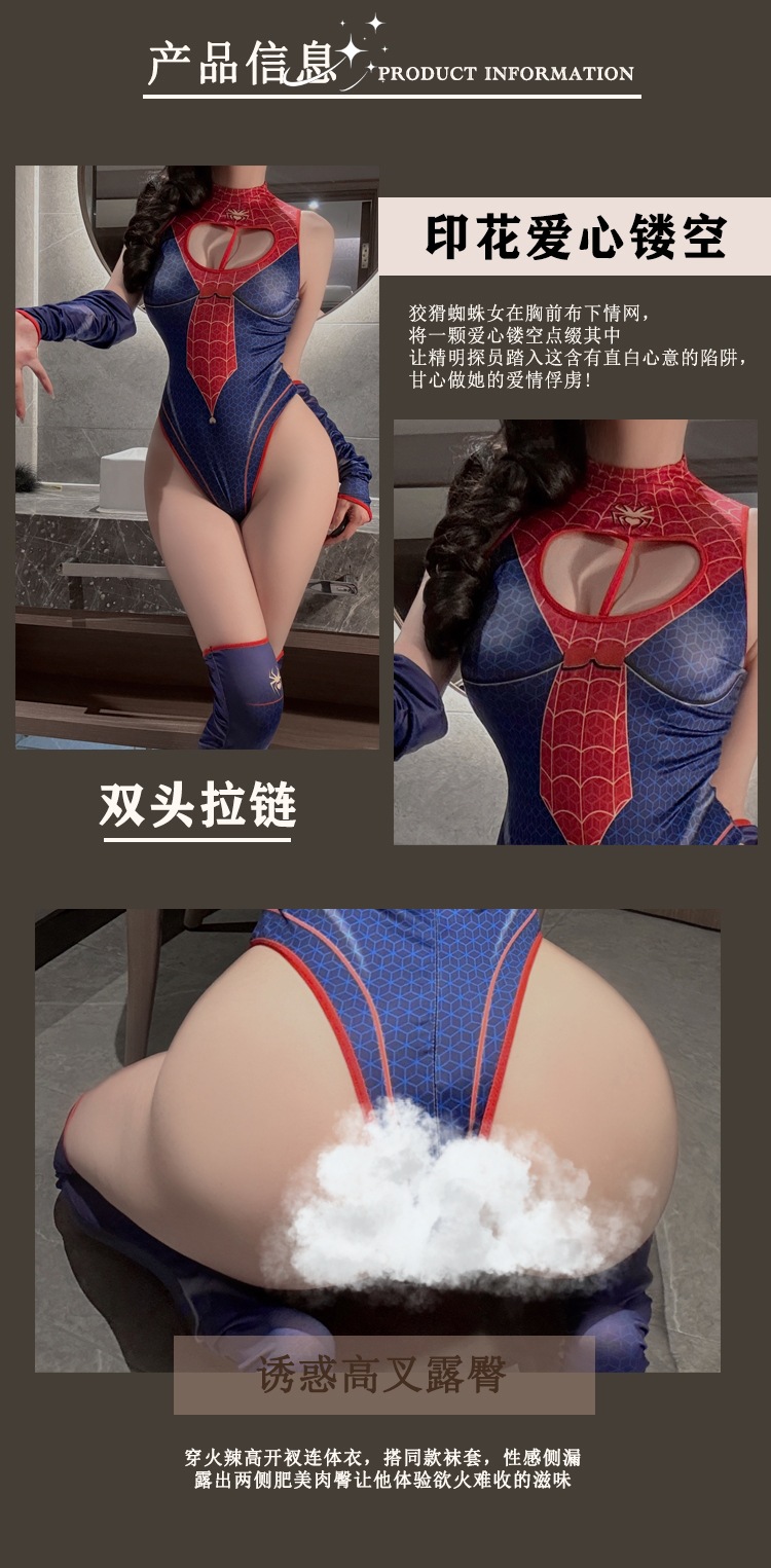 蛛女猎情 【拉链开裆连体衣+袖套*2+长筒袜】